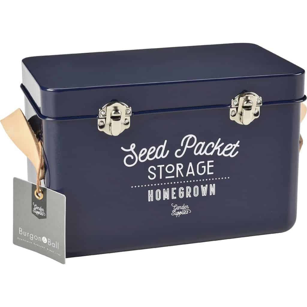 Burk för fröpåsar, mörkblå, från varumärket Burgon & Ball. Håll dina fröpåsar organiserade och skyddade med denna stilrena och praktiska burk för fröpåsar i mörkblått. Perfekt för trädgårdsälskare som vill ha ordning och reda i växthuset, på hyllan eller i växtrummet.