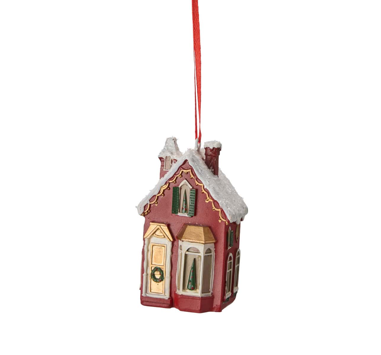 Juldekoration HUS i röd polyresin med handmålade detaljer. En söt juldekoration att hänga i granen eller fönstret – sprider värme och julstämning hemma.
