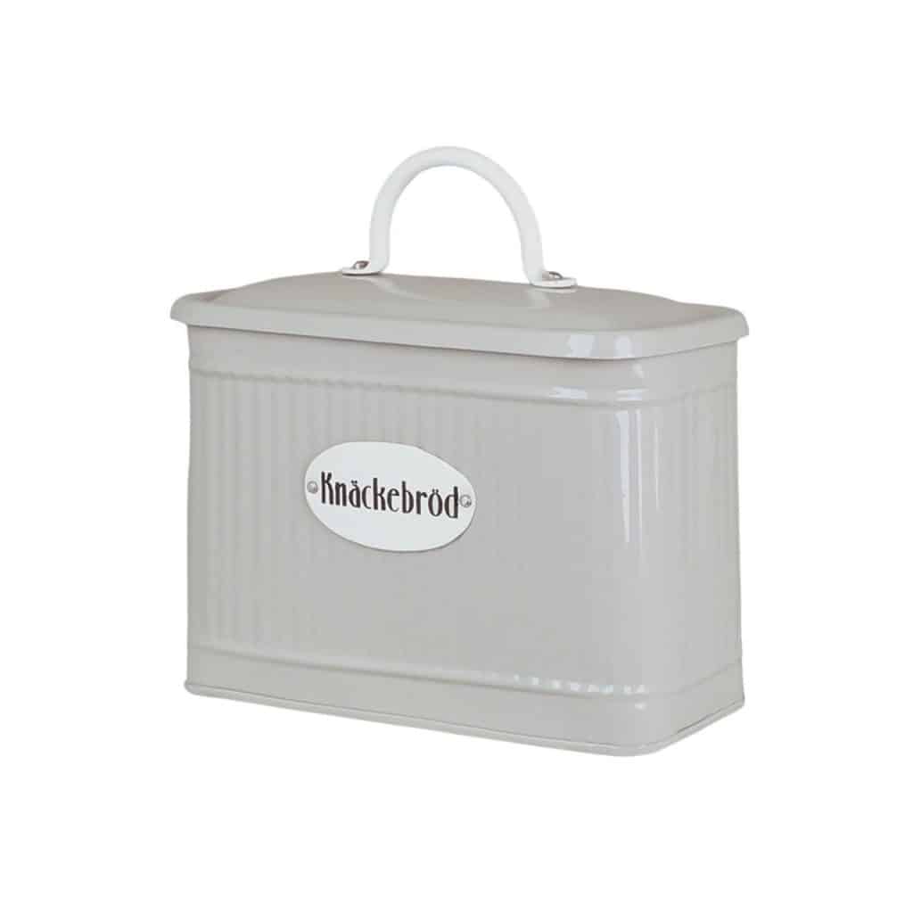 Beige plåtburk med lock och texten “Knäckebröd”. Handgjord i järn med ribbad form och klassisk design. Håller ordning på frukosten och ger köket en mjuk, lantlig känsla.