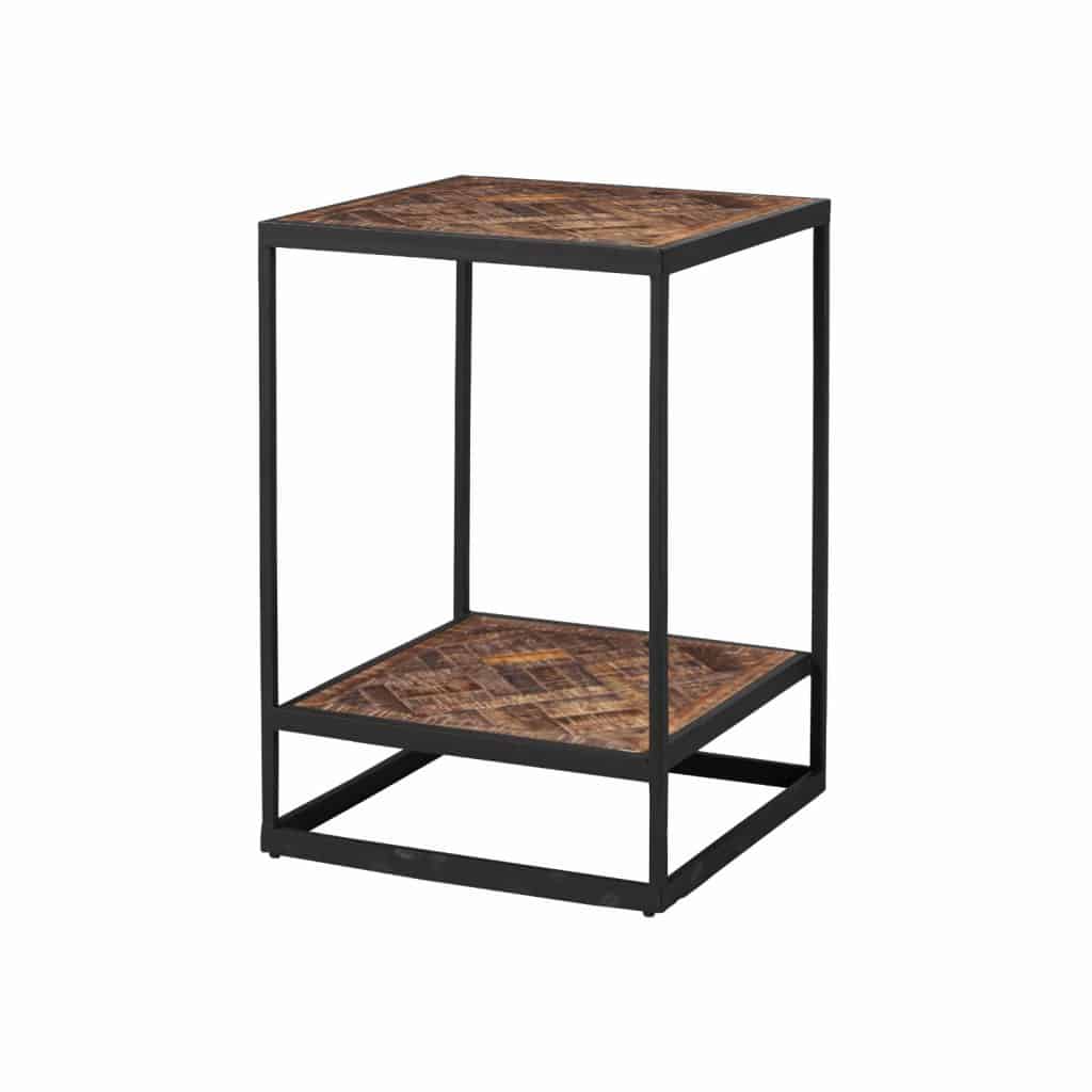 Sidobord KYOTO från det svenska varumärket Wikholm form. Sidobordet är i svart metall samt odlad teak som ligger i ett vackert mönster.
