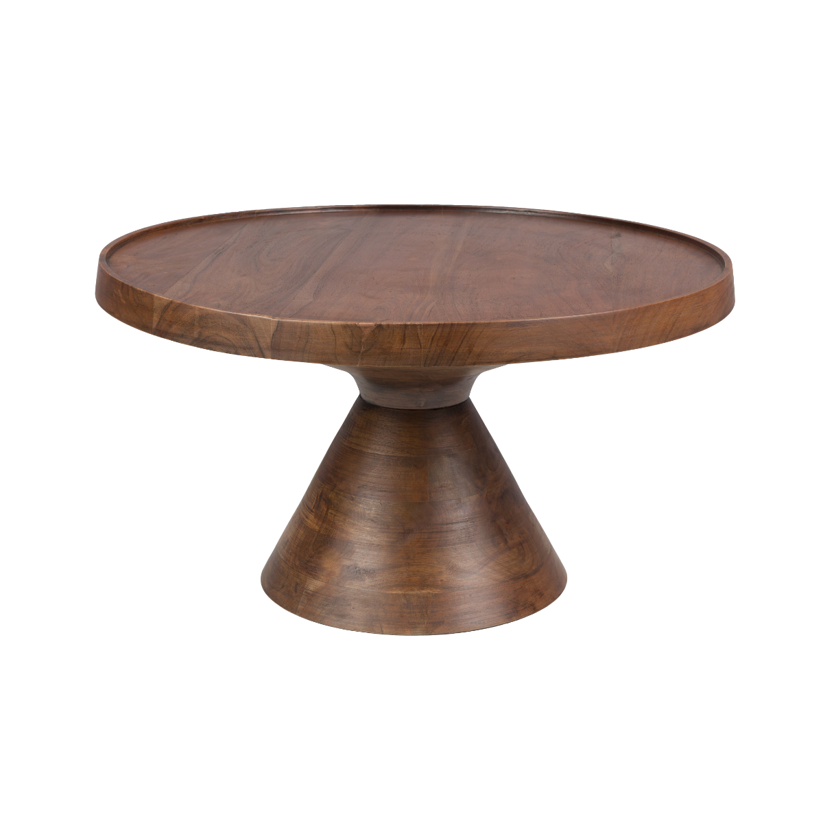 Det här är ett runt soffbord i akaciaträ med silkeslen yta och upphöjd kant som fångar upp det lilla spill som lätt kan hända. Den mjuka, organiska formen på foten ger bordet karaktär utan att ta över. Resultatet? Ett bord som känns både gediget och harmoniskt.