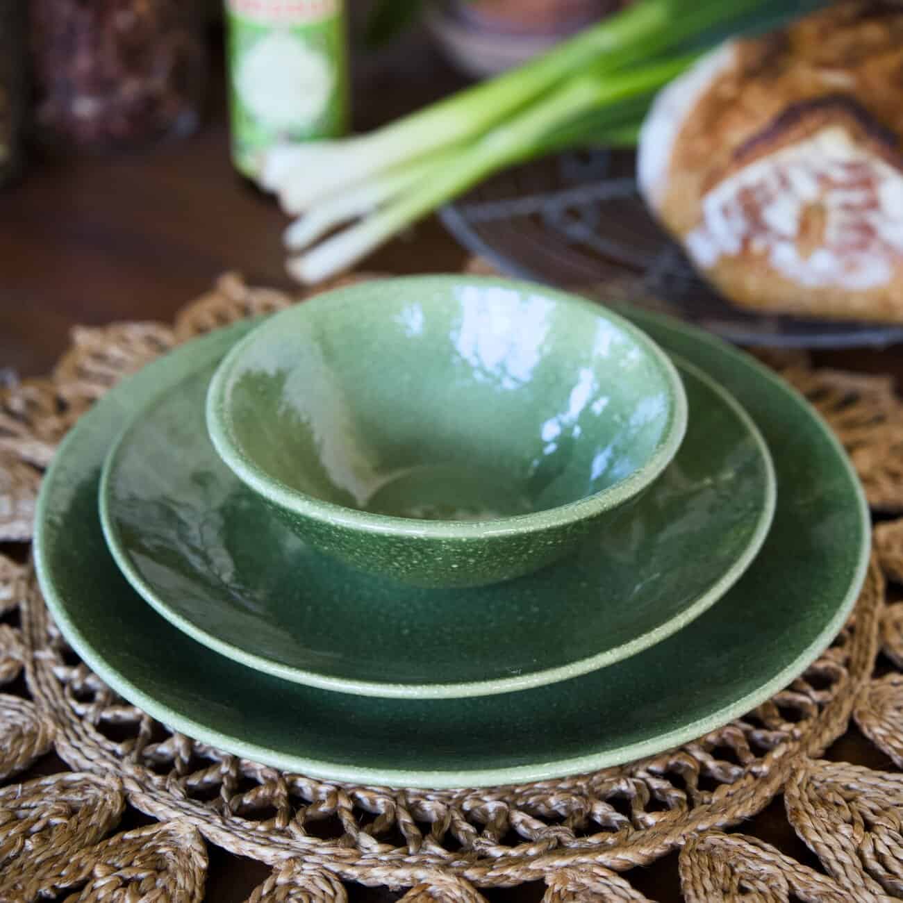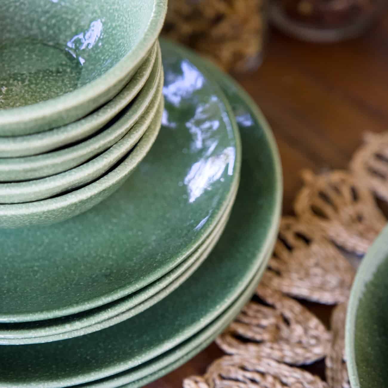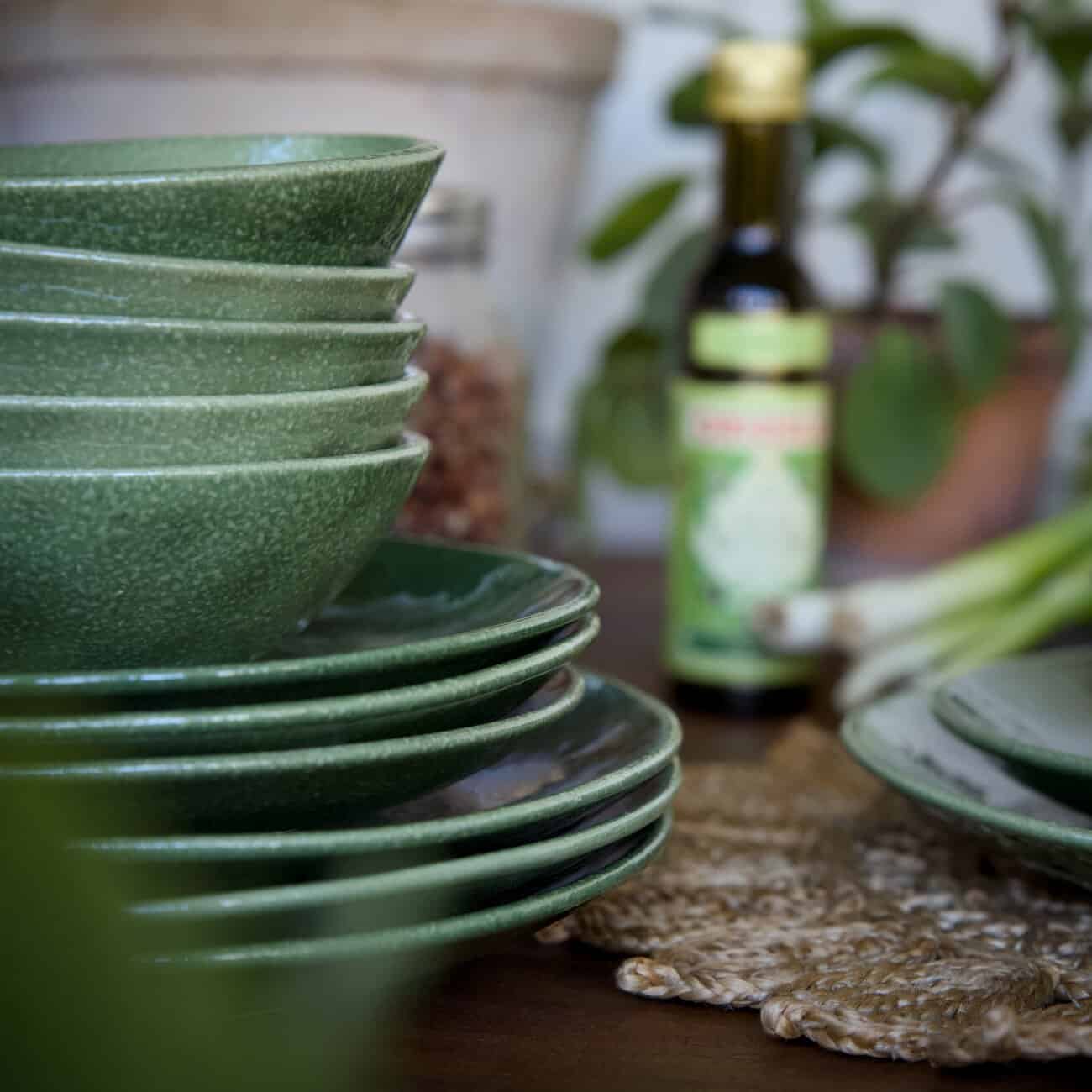 Tallrik ANNABELLE i grön från varumärket Affari of Sweden. Den unika glasyrbränningen ger varje tallrik ett individuellt uttryck – ingen är den andra lik, vilket skapar en rustik men ändå elegant känsla. Perfekt för såväl vardag som fest, där den gröna tonen lyfter fram maten och skapar en inbjudande atmosfär.