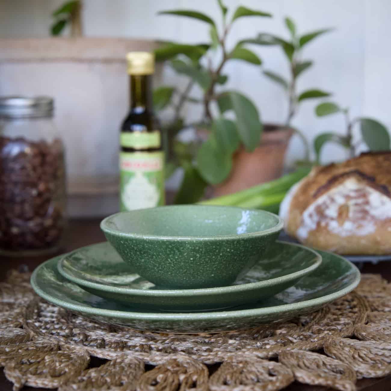 Elegant tallrik i grönt stengods från Affari of Sweden. Perfekt för vardag och fest. Tål maskindisk!