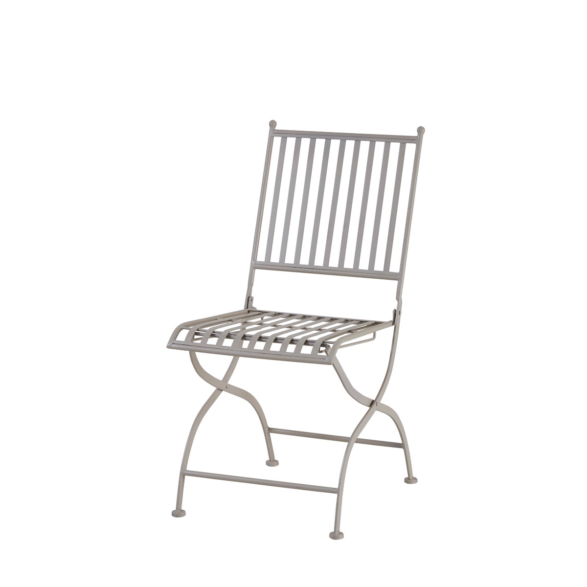 Hopfällbar trädgårdsstol i beige järn med tidlös cafékänsla. Perfekt för balkong, uteplats eller som extra sittplats. Smidig att förvara och vacker att duka med.