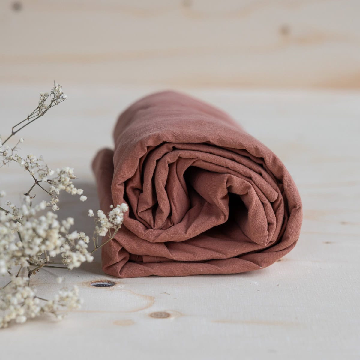 Mjukt och generöst underlakan i ekologisk bomull. Terracottafärgad, tvättad för extra mjukhet och GOTS-certifierad för hållbarhet.