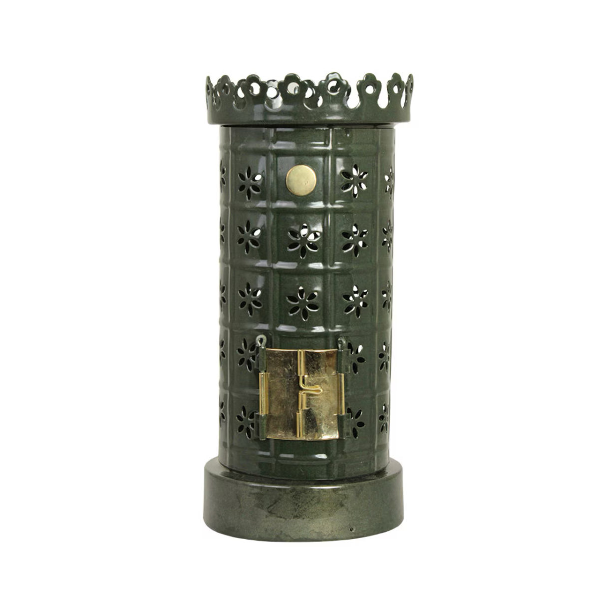 Värmeljuslykta i grön plåt formad som en klassisk kakelugn. Sprider ett varmt, dekorativt ljus och skapar en ombonad känsla i hemmet.